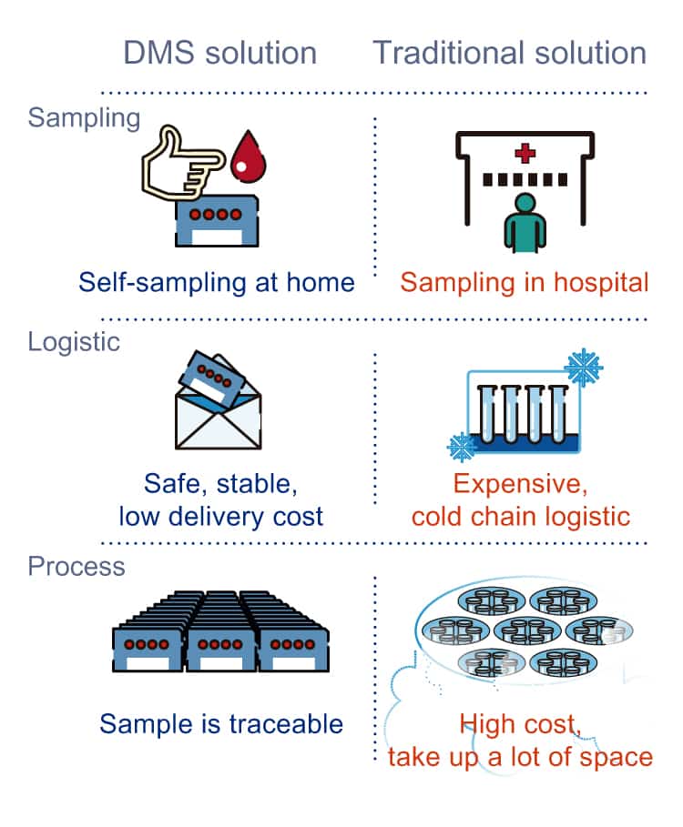 Because DMS is simple, convenient, safe and reliable, combining with the mature and efficient logistics system, it makes health screening a very simple matter.