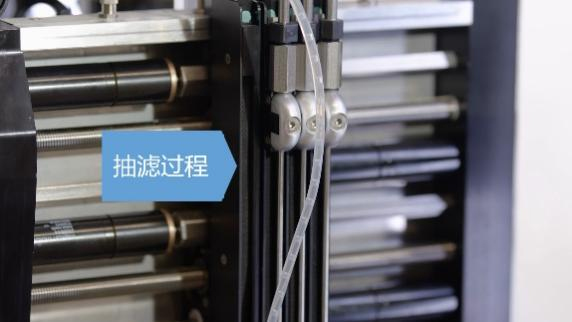 下图展示的是 Chemspeed 第一类自动化过滤的方案。即通过真空系统连接过滤滤芯,完成抽滤功能,最终实现对固体、液体的混合物实现固液分离的过程。