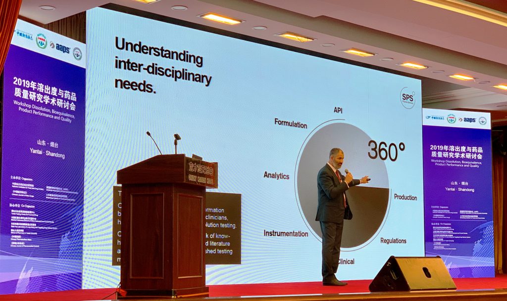 会议期间,来自法国 SPS 制药服务公司的总经理兼技术负责人 Samir Haddouchi 发表了 《溶出技术在原料药质量研究中的应用》,以及他们团队在溶出测试方面的技术和经验。会后更接受传媒采访,并表示 SPS 在中国市场与力扬企业合作已有二十余年,两者不仅仅是技术上的支持,力扬还设有实验室及高端设备,配合客户需要进行检测项目,让中国的制药行业节约了大量成本。