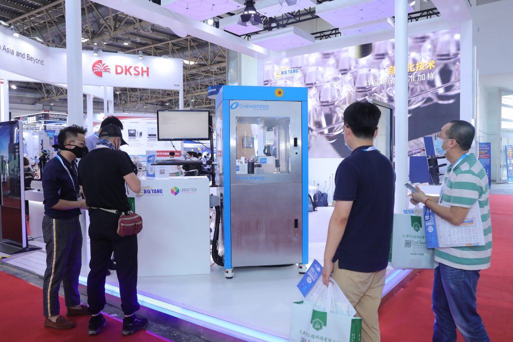 力扬展台现场,Chemspeed FLEX 展区的参观人群络绎不绝,这是当前展出设备中应用最为成熟和客户实例最丰富的产品之一。力扬产品经理张晨曦 (Lila) 介绍:“Chemspeed自动化解决方案凭借其独到的优势和灵活性被众多国际客户所采用。例如默克公司利用合成与分析设备的联用进行了 Pd 催化 Suzuki 偶联反应和自动反应动力学研究,使反应速率提升 5 倍之多。阿斯利康制药公司利用高通量高压反应功能,有效扩大了催化剂筛选范围,6 个月即收回自动化系统投入成本……”不仅仅是国际化药巨头,在学术领域,Chemspeed 的自动化解决方案还助力了众多世界百强学府提升科研实验室的研发效率和质量。
