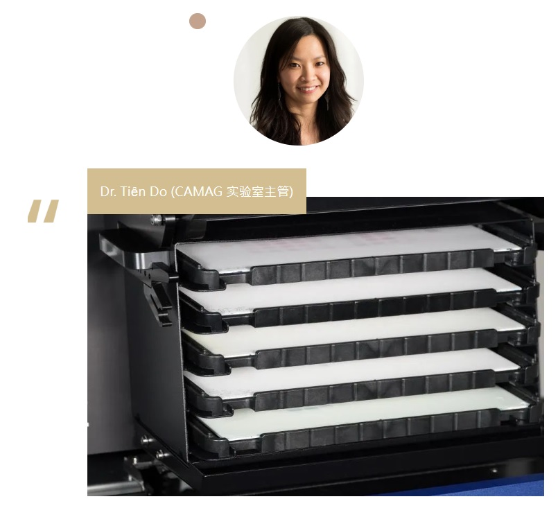 CAMAG HPTLC PRO 全自动色谱系统实现连续多板之 “点样 – 展开 – 衍生 – 检测 – 分析 – 报告” 操作流程,是新一代的高效薄层色谱的领先技术。