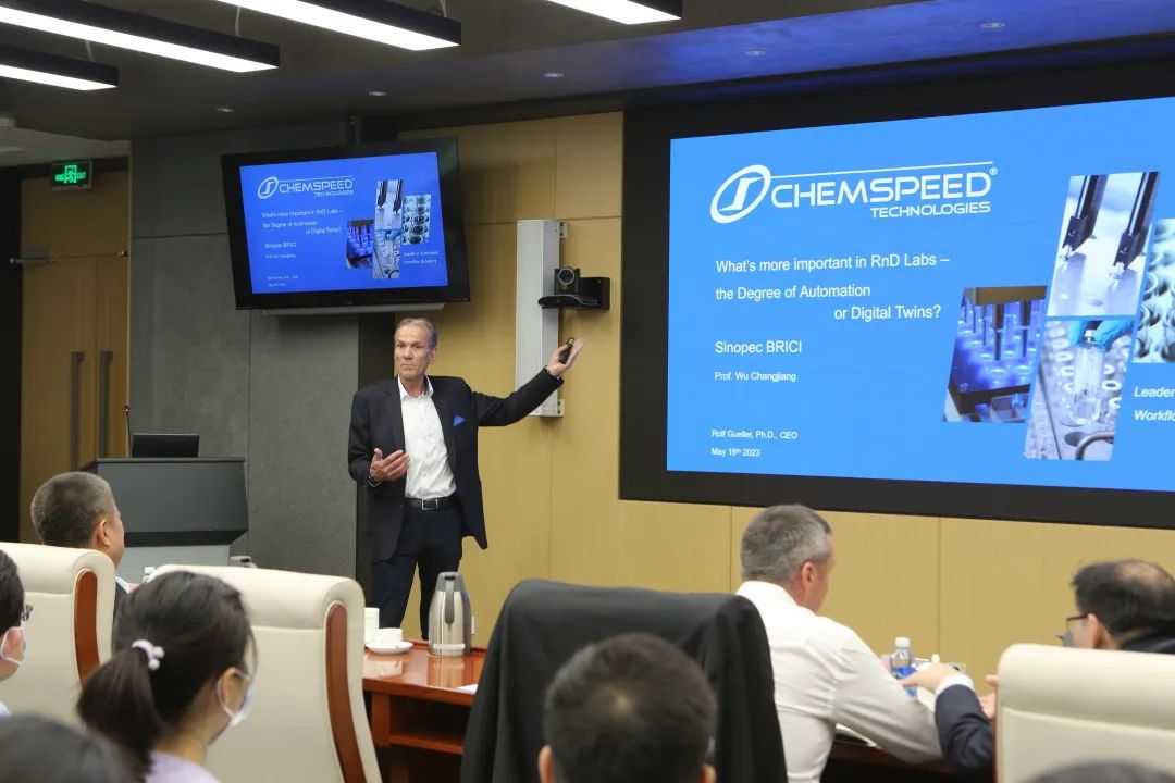 在访问期间,Gueller 博士除了分享数字孪生、机器学习和人工智能等最新技术在化学研发领域的应用,还展示了旗下最新的实验室数字化方案,以及阐述对实验室研发所帶來的颠覆性影响,助力提高科研效率和实验室数字化水平。