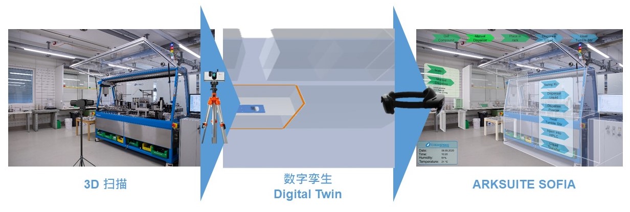 Chemspeed 提供专有的数字孪生软件 ARKSUITE SOFIA,无缝的将数字孪生系统与 Chemspeed  系统联成一线,让科研人员同时管理及执行混合式的工作流程,全面加快研发进程。