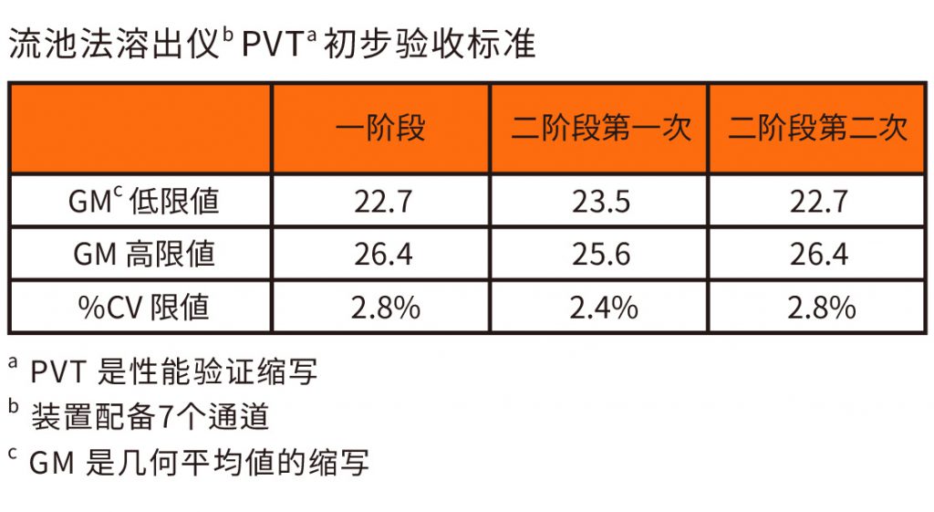 表4. 流池法溶出仪 PVT 初步验收标准