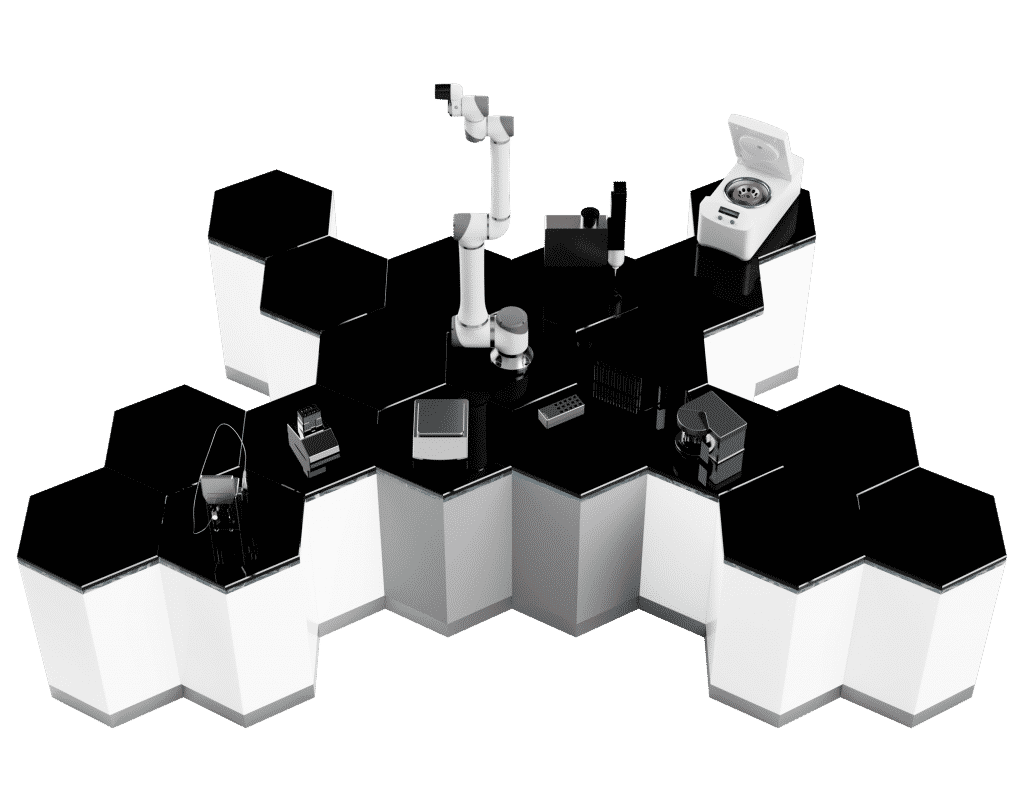 配置特制的智能家具赋予实验室更大可能性,例如:多组六角形实验台可以按不同的需求轻易扩展设备,灵活组合不同的模组化工具,让不同的实验可以于同一平台同时进行,迎合各种形式的实验及应用。
